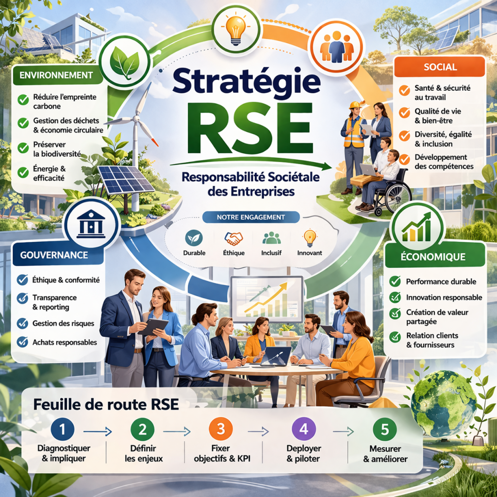 - Définir une stratégie RSE alignée avec la vision de l’organisation